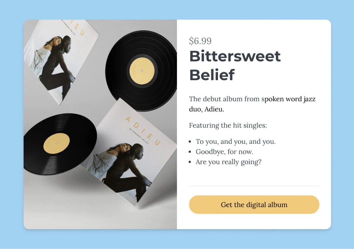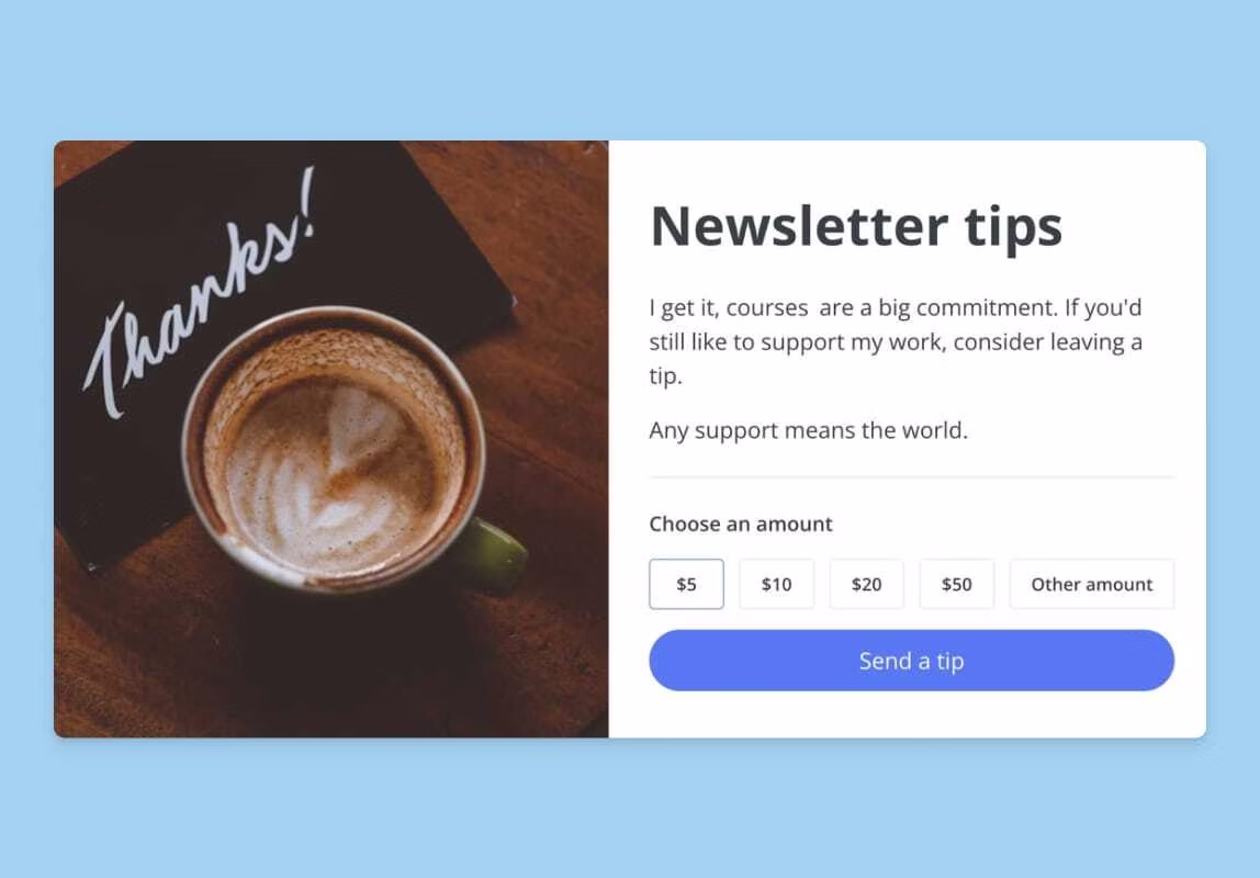Create a virtual tip jar so your most passionate fans can support your work even if you're not selling a product.